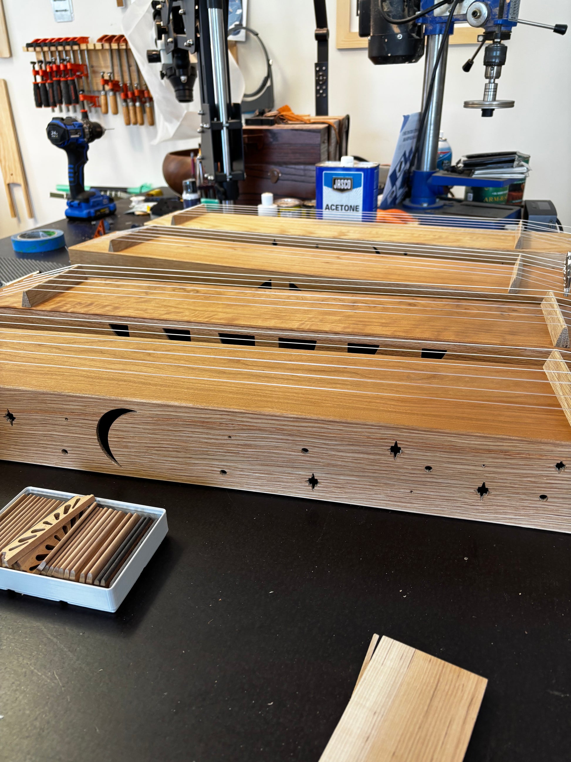 Oak Door Harp - Moon and Stars Soundholes